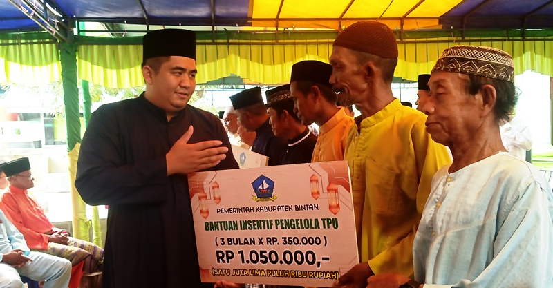 Bupati Bintan Roby Kurniawan menyerahkan dana insentif pengelola TPU. (Foto: Hasura/Presmedia.id)